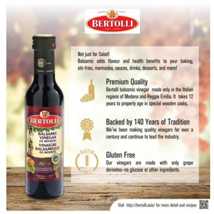Bertolli Balsamic Vinegar is an exclusive Modena vinegar. The acid touch of ripe wood blends with the sweetness of. 250 mL Balsamic Vinegar Balsamic Vinegar.